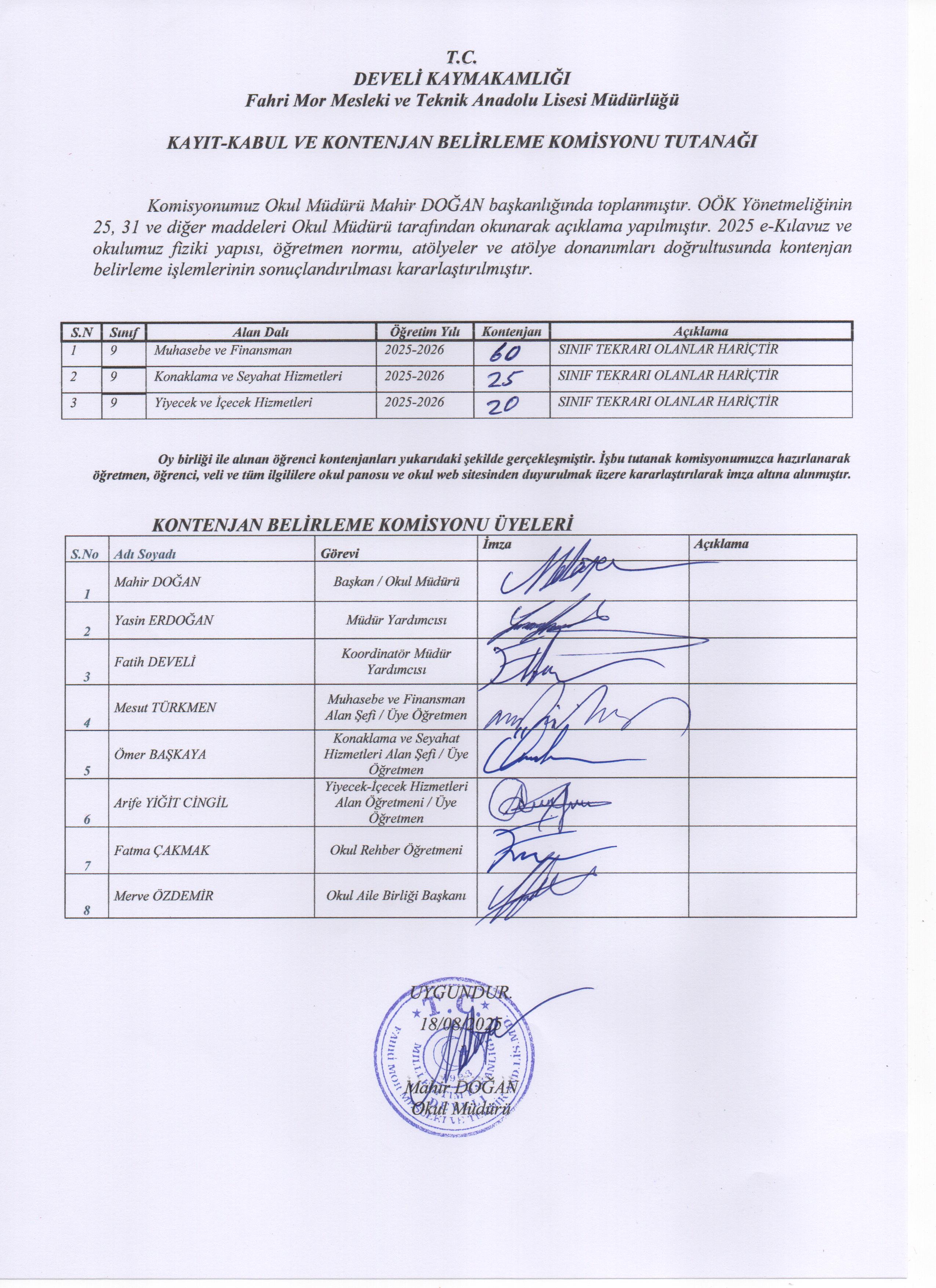 2025-2026 Alan Kontenjan Belirleme Komisyon Tutanağı